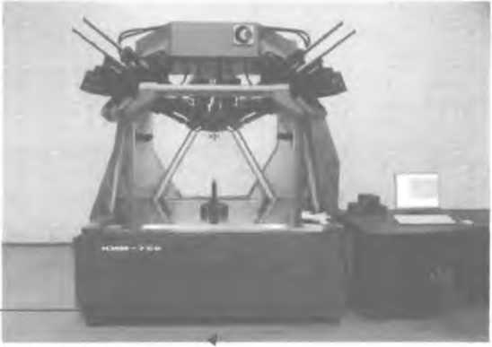 На силовой раме с помощью шарниров закреплены шесть приводов, которые обеспечивают поступательное движение тяг. перемещающих рабочий орган, включающий в себя каретку с закрепленным на ней щуповым датчиком.