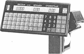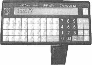 Т - Устройство управления весов содержит первичный дисплей, клавиатуру, устройство печати этикеток, разъем mini SD, интерфейсы RS232 и Ethernet. Первичный дисплей имеет с двух сторон индикацию (со стороны покупателя и со стороны продавца) «МАССА», «ЦЕНА» и «СТОИМОСТЬ».