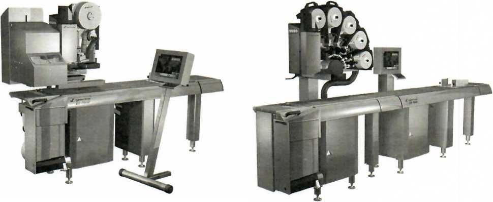 ES 7014 укомплектована четырьмя верхними и одним нижним принтером и системой ленточных конвейеров с весоизмерительным модулем для продуктов;