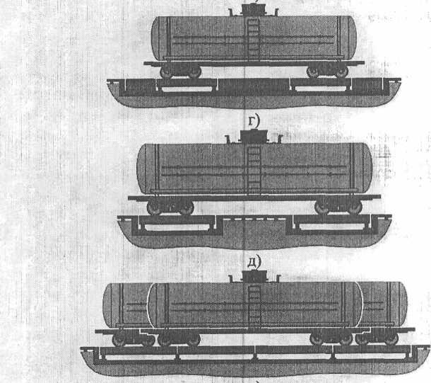 Рисунок 1 - Схемы ГПУ весов РД-Д: а) - для поосного способа взвешивания, б-в) - для потележечного способа взвешивания, г-е) для повагонного способа взвешивания
