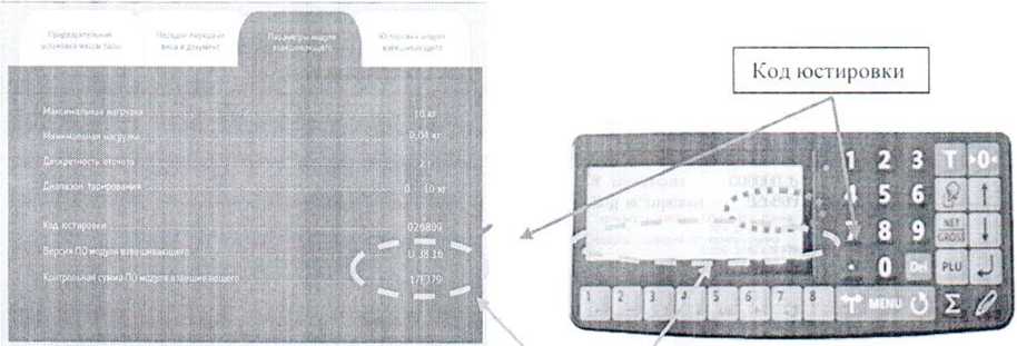 Версия ПО и Контрольная сумма ПО модуля взвешивающего