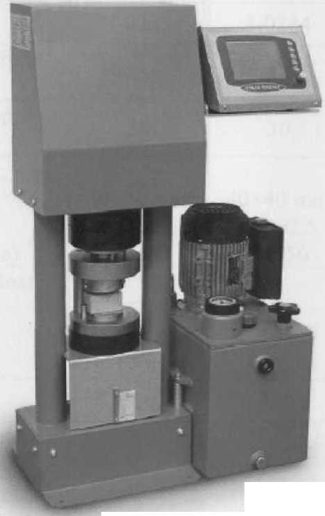 При испытании образец устанавливается между плитами. Подв^^^^^ та перемещается с помощью нагружающего гидравлического порш образец.
