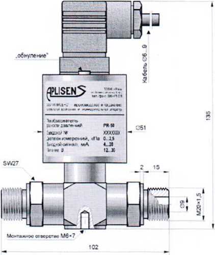 Преобразователь исполнения PD Пример со штуцерами типа Р Допустимое статическое давление 4 МПа
