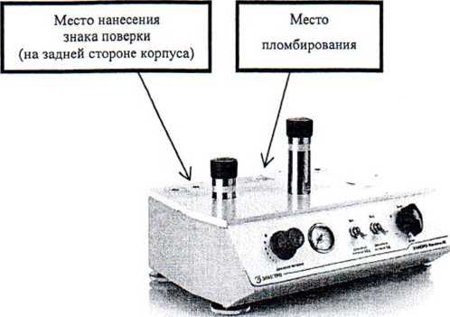 наносится на корпус калибратора способом гравировки или иным способом, на титульные листы руководства по эксплуатации и паспорта типографским способом.