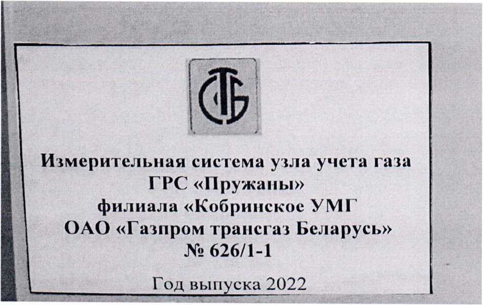 Измерительная система узла учета газа ГРС «Пружаны» филиала «Кобринское УМГ ОАО «Газпром трансгаз Беларусь» № 626/1-1