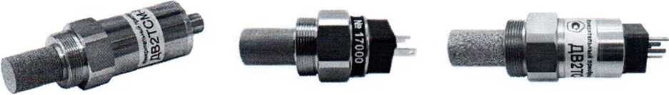 Рисунок 1 - Общий вид преобразователей исполнений ДВ2ТС(М) (слева), ДВ2ТСМ-Б\080 (в центре), ДВ2ТС(М)-ГМ (справа).