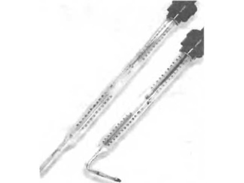 В зависимости от формы нижней части термометры изготавливаются прямые и угловые.