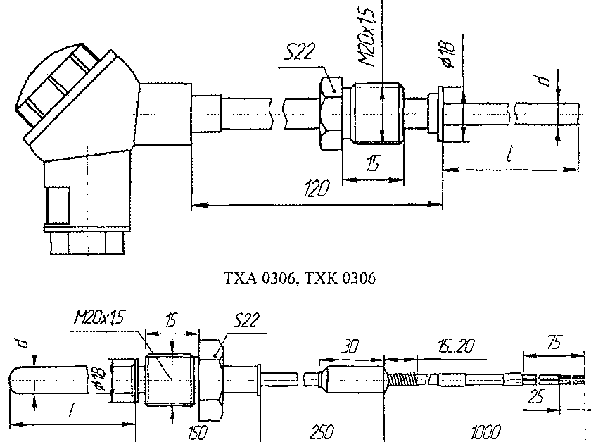 Чертежи общего вида термопреобразователей