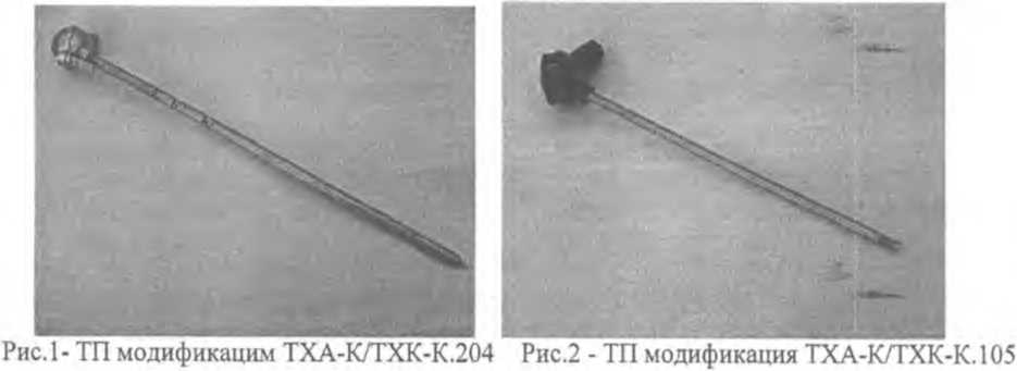 ТП изготавливаются следующих модификаций: ТХА-К/ТХК-К.001. 101, 102, 103, 104, 105, 106, 107, 204, 205, 206, 207, 231, 232, 233, 301, 302, 303, 304, 305, 306, 307, 3052, отличающихся друг от друга конструкцией защитной арматуры, видами присоединения к объект}' измерения (без монтажных элементов, с подвижным штуцером, с неподвижным штуцером) и наличием или отсутствием клеммной головки. Материал клеммной головки - алюминиевый сплав или фенопласт.