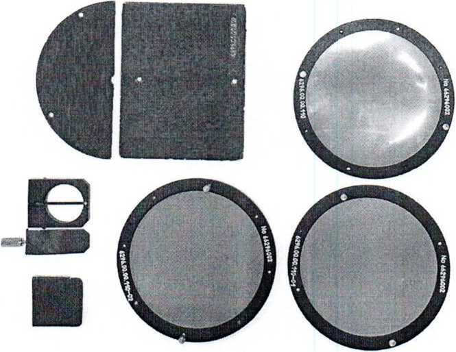 Фильтры светорассеивающие (далее - фильтры) из комплекта ослабляют и рассеивают световой поток в рабочей зоне нефелометра, тем самым имитируя определенное значение метеорологической оптической дальности (далее по тексту - МОД), которое и определяет нефелометр. В комплект входят четыре фильтра (6296.00.00.120, 6296.00.00.110, 6296.00.00.110-01, 6296.00.00.110-02), каждый из которых имитирует определенное значение МОД.