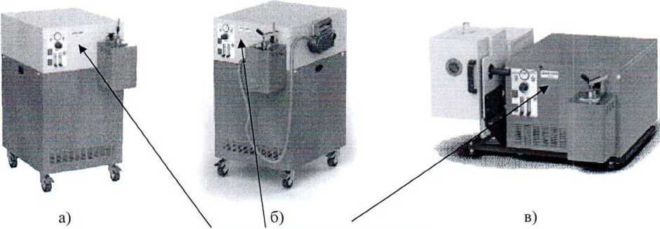 Рисунок 1 - Общий вид спектрометров, обозначение места нанесения знака поверки: а) ДФС-500; б) ДФС-500В; в) ДФС-500Д; г) ДФС-500Н; д) МФО 12