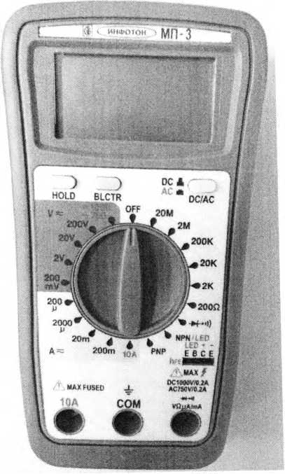 Мультиметры портативные МП-3 (далее - мультиметры) предназначены для измерения напряжения и силы постоянного тока, среднеквадратического значения напряжения и силы переменного тока синусоидальной формы, электрического сопротивления постоянному току.