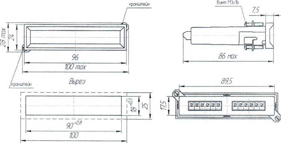 Рисунок 5в - Габаритные и установочные размеры приборов Щ02.01П. ЩП02.01П, 1ЦЧ02.01П
