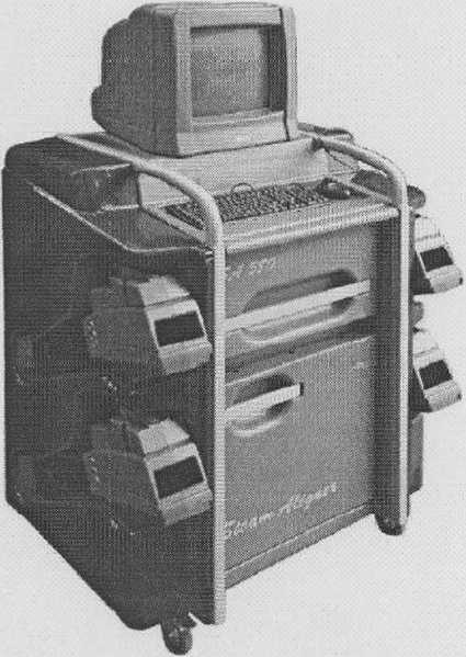 Приборная стойка стендов серий SA 830 D3 включает в себя модуль персонального компьютера типа IBM-PC/AT с микропроцессорной системой обработки результатов измерений, цветной дисплей, принтер формата А4 и клавиатуру. Электронные поворотные круги устанавливаются под передние колеса автомобиля и подключаются кабелем к приборной стойке стендов.