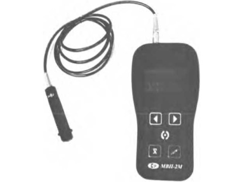 Прибор МВП-2М состоит из электронного блока и измерительного преобразователя, соединенных гибким кабелем. Фотография общего вида прибора МВП-2М представлена на рисунке 1.